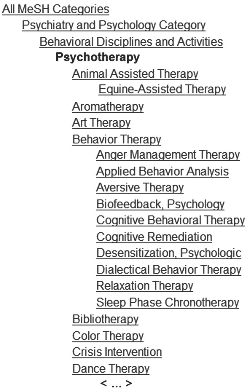 Рис. 1. Иерархическое дерево понятия «психотерапия» в MeSH