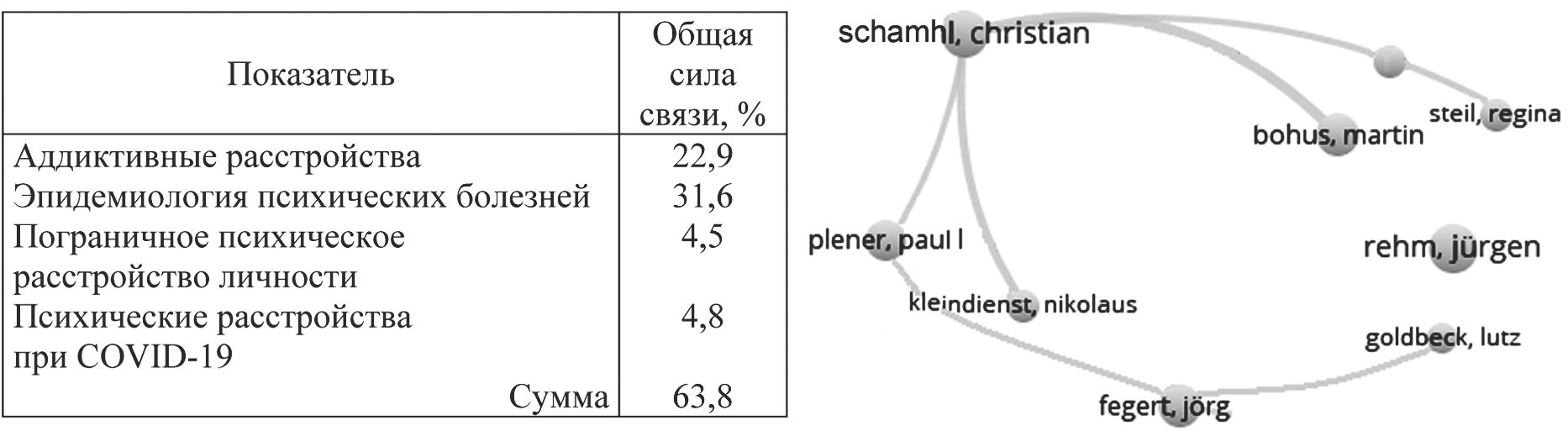 Из 14 проанализированных научных соавторств по психотерапии 10 были аффилированы с учеными из научных организаций Германии. Это необычно, так как значительная часть исследований по психотерапии была представлена учеными из США. Возможно, у этих исследователей было меньше статей в соавторстве. В последние годы отмечается также высокий уровень участия ученых из Германии в коллаборационных статьях [3] с несколькими десятками соавторов из разных стран мира. Феномен нуждается в дополнительном изучении.