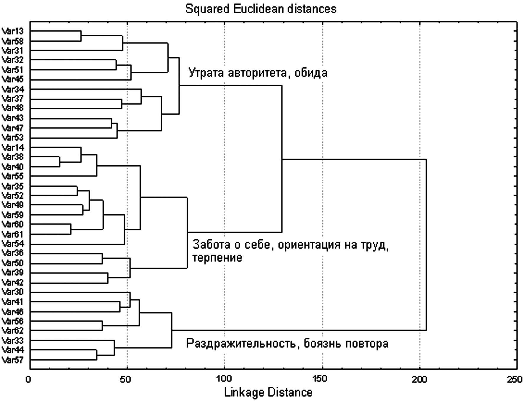 Рис. 1. Кластерное дерево по результатам стандартизированного клинического интервью больных до проведения коррекции [адаптировано по 8]