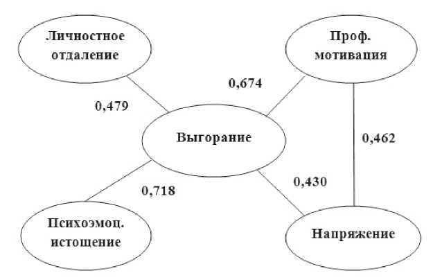 Рис. 5. Корреляционные связи выгорания, группа 2 (со стажем службы более 5 лет)