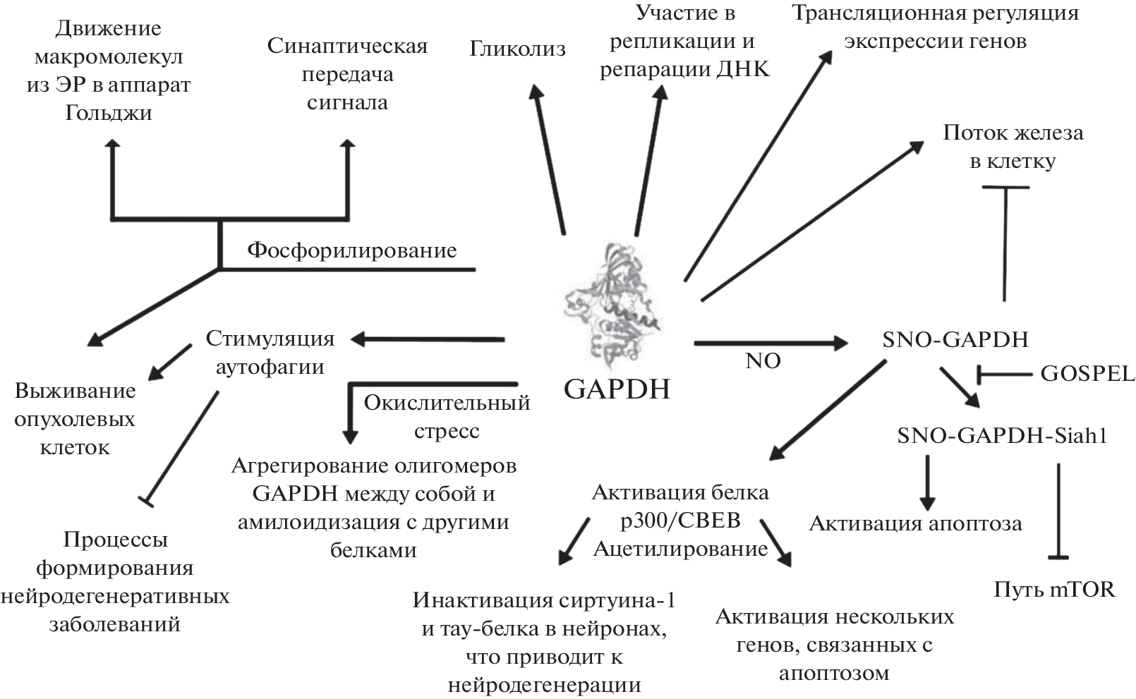 - Hara M.R., Agrawal N., Kim S.F., Cascio M.B., Fujimuro M., Ozeki Y., Takahashi M., Cheah J.H., Tankou S.K., Hester L.D., Ferris C.D., Hayward S.D., Snyder S.H., Sawa A. // Nat. Cell. Biol. 2005. V. 7. P. 665–674. https://doi.org/10.1038/ncb1268