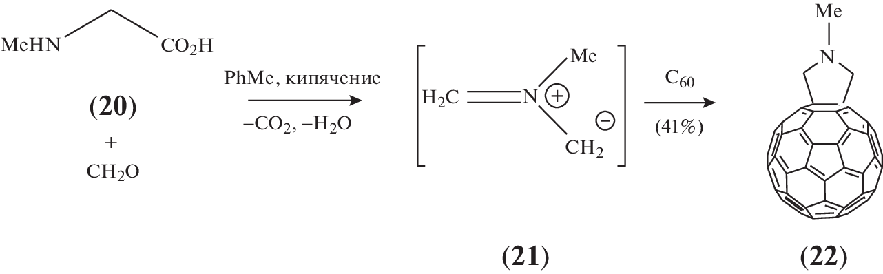 - Maggini M., Scorrano G., Prato M. // J. Am. Chem. Soc. 1993. V. 115. P. 9798–9799. https://doi.org/10.1021/ja00074a056