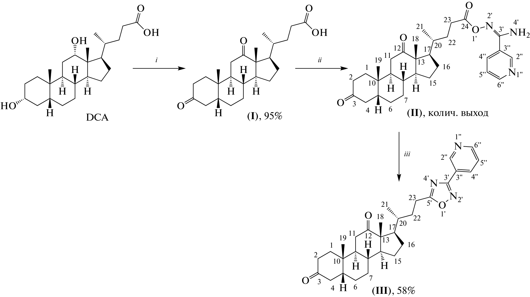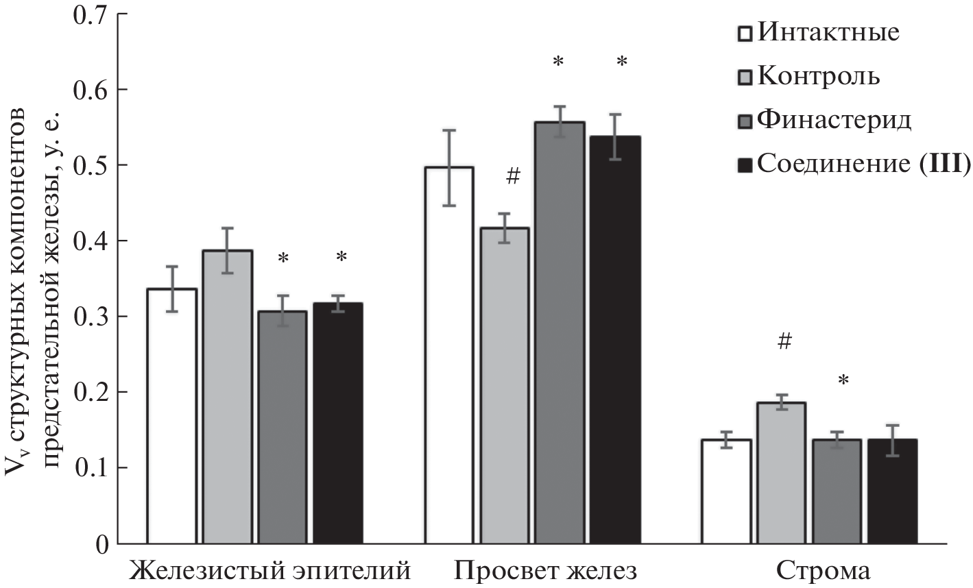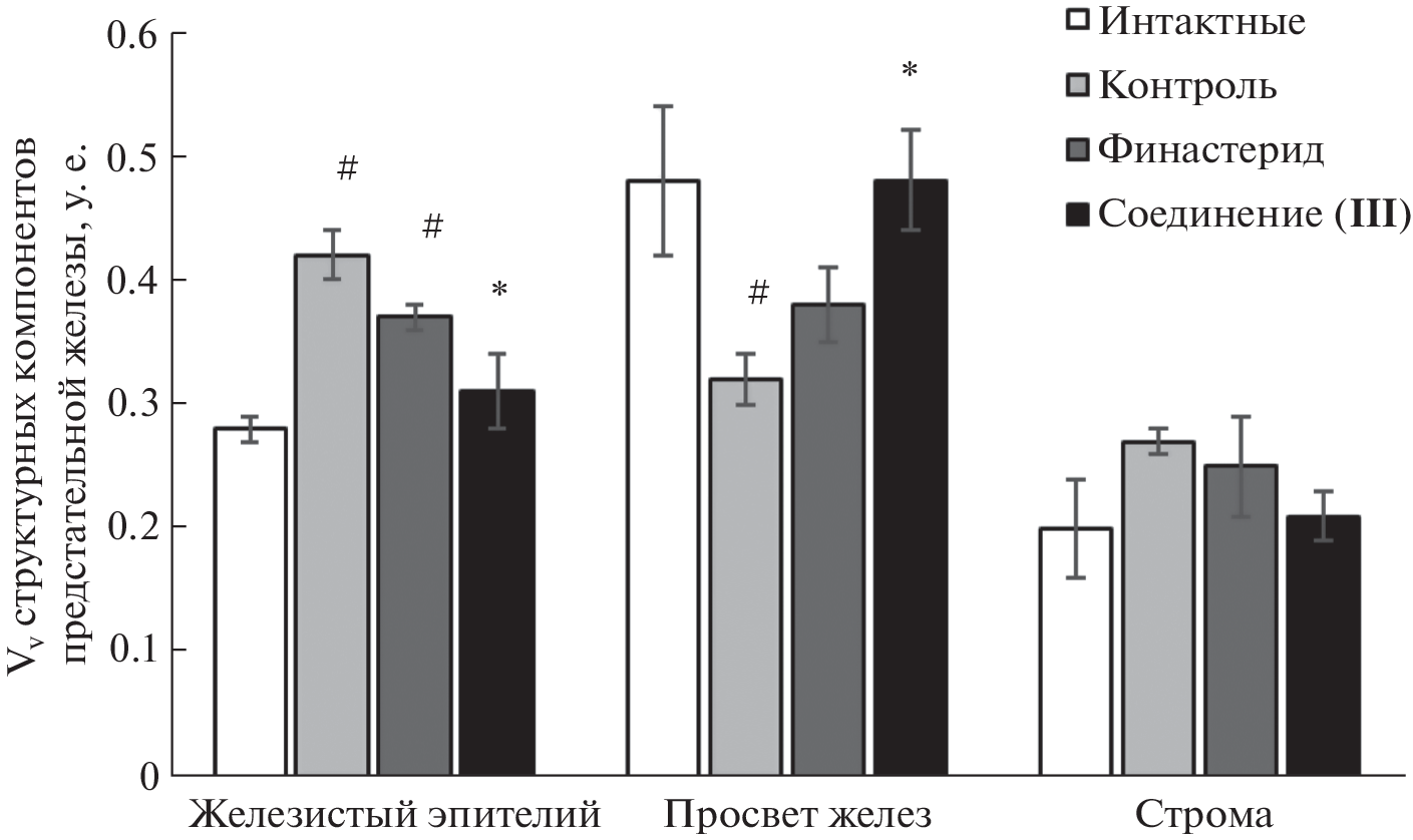 Ингибиторы 5-α-редуктазы (5-АР) считаются наиболее эффективными препаратами в лечении пролиферативных процессов при аденоме предстательной железы. К ним относятся два синтетических азастероида – финастерид и дутастерид, которые в условиях длительной курсовой терапии вызывают побочные эффекты в виде расстройств половой функции у мужчин. В качестве стартового соединения для получения малотоксичных ингибиторов 5-АР нами предложена дезоксихолевая кислота, на основе которой синтезировано целевое соединение, содержащее 3-мета-пиридин-1,2,4-оксадиазольный фрагмент. Методом молекулярного докинга показано, что новый агент, подобно финастериду, способен проникать в сайт связывания 5-АР через образование ковалентных аддуктов с NADP-H. При этом оба лиганда имеют сопоставимые величины энергии связывания с мишенью (–20 и –15 ккал/моль соответственно у финастерида и целевого соединения). В экспериментах на тестостероновой и сульпиридной моделях доброкачественной гиперплазии предстательной железы установлено, что внутрижелудочное введение полученного производного дезоксихолевой кислоты крысам Wistar в дозе 20 мг/кг и финастерида в дозе 10 мг/кг оказывает сходное простатопротекторное действие путем уменьшения пролиферативных процессов в железистом эпителии и строме простаты крыс. Новый агент менее токсичен, чем финастерид: величина LD50 у мышей CD-1 составляет >1500 мг/кг против 1060 мг/кг у финастерида. На основании полученных результатов 3-мета-пиридин-1,2,4-оксадиазольное производное дезоксихолевой кислоты может рассматриваться как перспективный кандидат для доклинических испытаний.