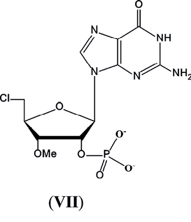 Рис. 3. Структура побочного продукта (VII) в синтезе 5′-монофосфата 7,3′-О-диметилгуанозина (V).