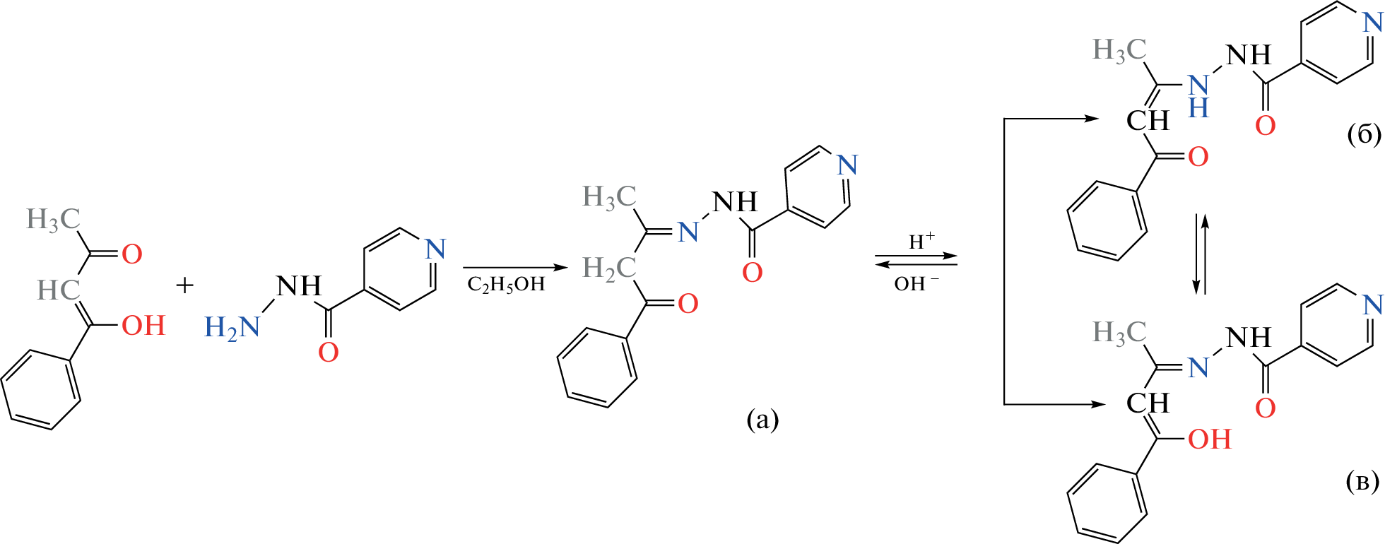 Синтезирован новый молекулярный двухъядерный комплекc ванадия(V) [VO(L)(OCH3)]2 (I), в котором H2L был получен в результате взаимодействия гидразида изоникотиновой кислоты (изониазид) с 1-фенил-1,3-бутандионом. Лиганд H2L и комплекс I исследованы методами элементного анализа, ИК-спектроскопией, масс-спектрометрией и рентгеноструктурного анализа (CCDC № 2172124 и 2172125 соответственно), состав и строение лиганда в свободном состоянии дополнительно исследованы методом ЯМР-спектроскопии. Установлено, что бидепротонированный органический лиганд L2– координируется к атому металла тридентатно через набор донорных атомов ONO с образованием двух сочлененных металлоциклов. При этом в H2L и в соответственном координированном лиганде стабилизированы различные таутомерные формы.
