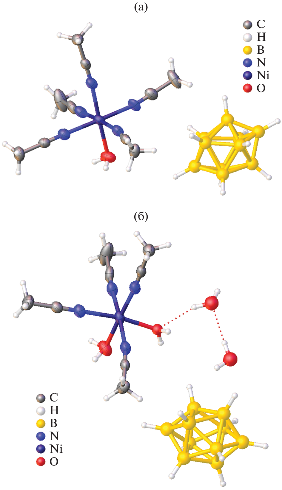 Nickel(II) complexation with the closo-decaborate anion in water and acetonitrile is studied. Complexes [Ni(solv)6][B10H10] (solv = H2O (I) or CH3CN (II)) are isolated. The complexes are characterized by elemental analysis and IR spectroscopy. Complex [Ni(CH3CN)5(H2O)]0.75[Ni(CH3CN)4(H2O)2]0.25[B10H10]·0.5H2O (III) is isolated from an acetonitrile–water system. The structure of complex III is solved by X-ray diffraction (XRD) (CIF file CCDС no. 2224702). A mechanism of ligand metathesis in the complexation of nickel(II) is proposed.