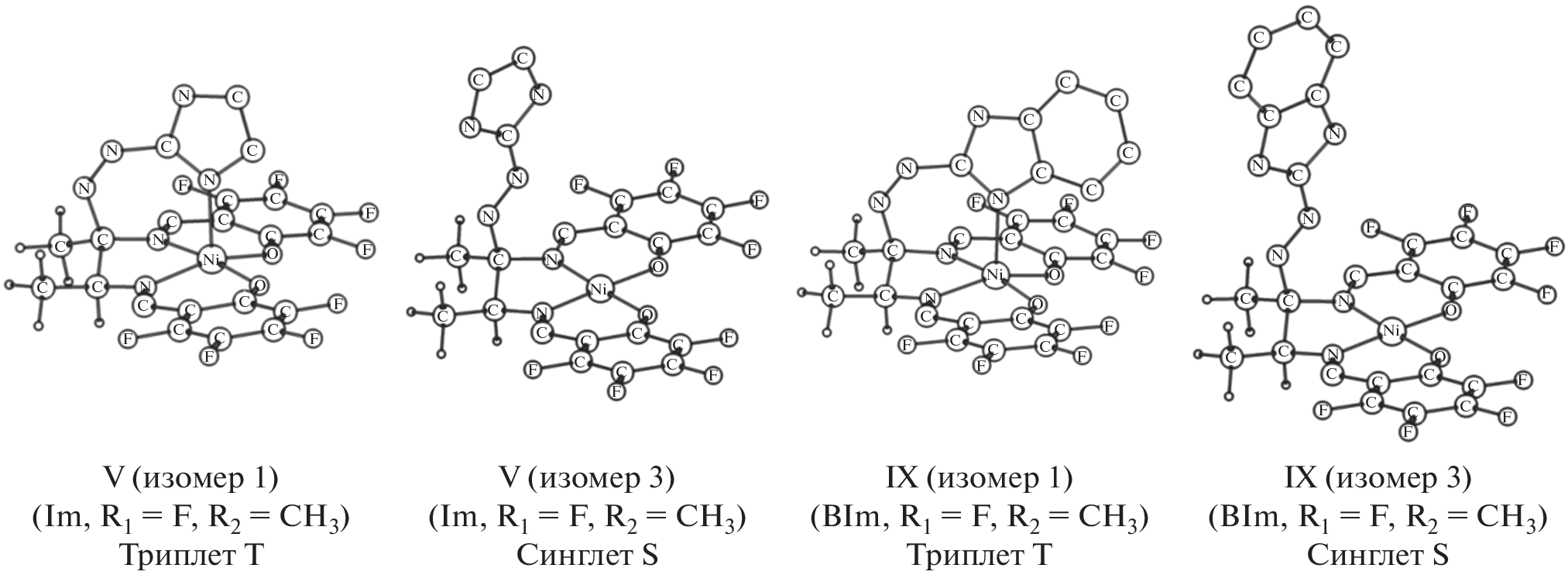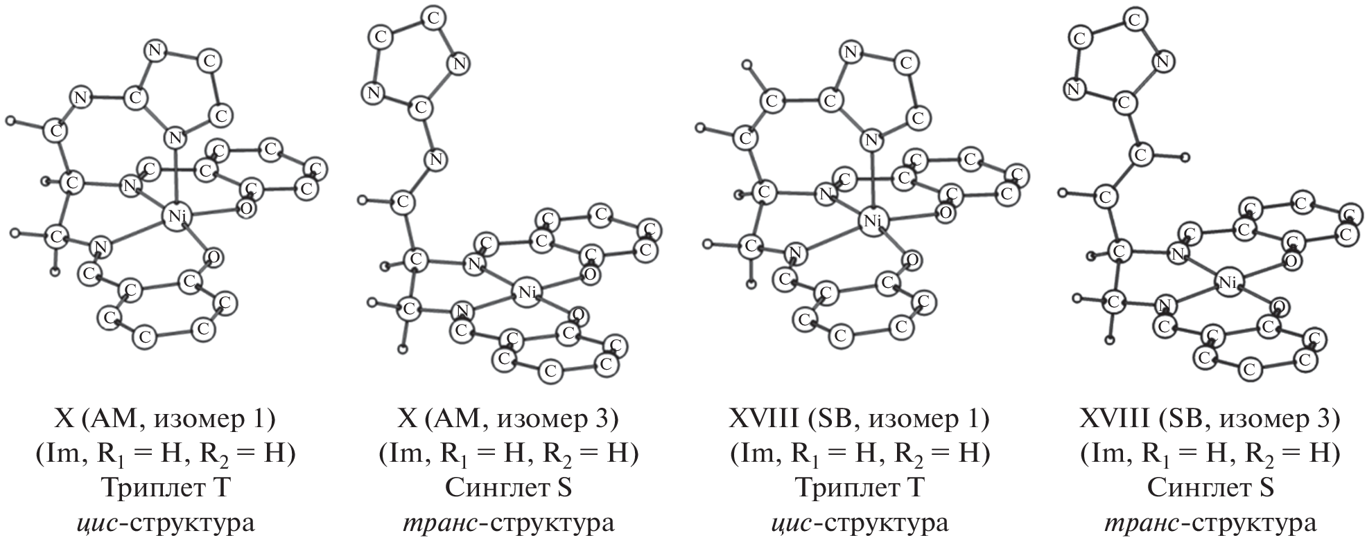 (DFT/B3LYP/6-311++G(d,p)) calculations were performed to study Ni(II) azomethine bis-chelates with photoactive moieties (imidazole and benzimidazole derivatives of azo compounds, azomethines, and stilbenes) exhibiting the behavior of molecular magnetic switches by the light-driven coordination-induced spin state switching (LD-CISSS) mechanism. The structural and energy characteristics of the complexes favorable to or restricting the applicability of these complexes as molecular switches were determined.