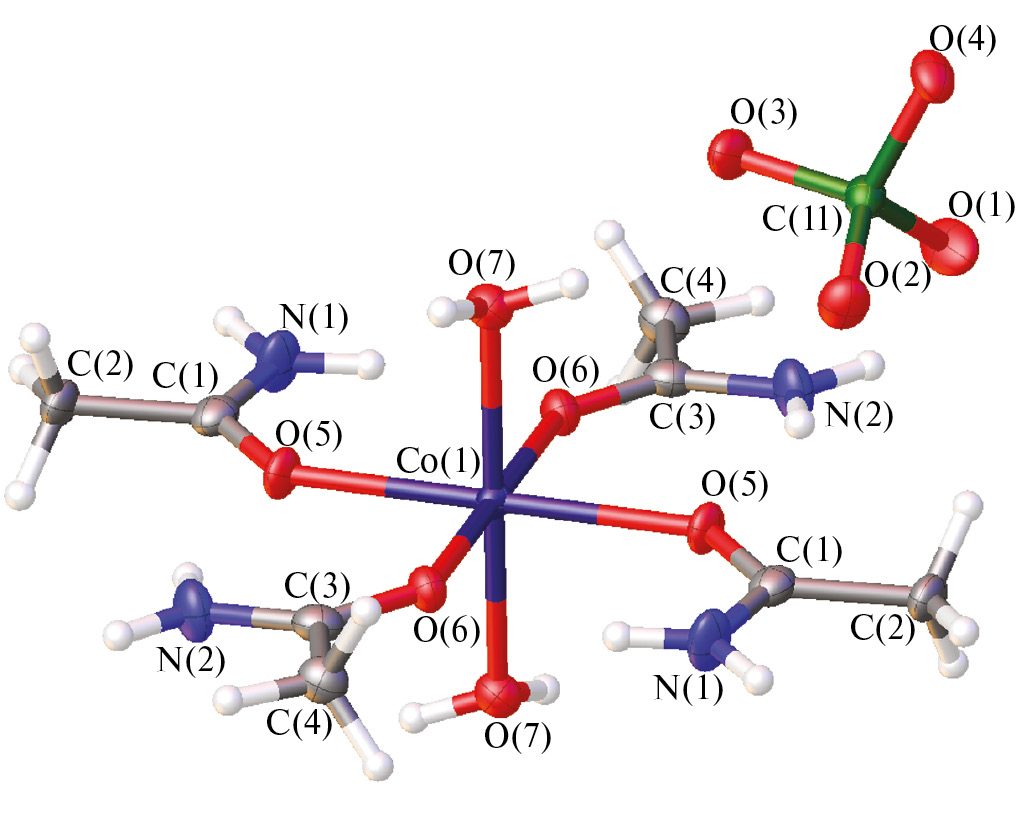 Следует отметить, что данных по получению оксидов кобальта с использованием перхлората кобальта(II) как окислителя, а также структурных исследований соединений, образующихся в результате взаимодействия перхлората кобальта(II) с карбамидом или ацетамидом, в литературе не приводится. Из числа родственных систем представлено использование перхлората никеля(II) и карбамида для получения фазы NiO [16]. Некоторые координационные соединения нитрата кобальта(II) с карбамидом и ацетамидом были изучены ранее, однако их термическое разложение не исследовалось.