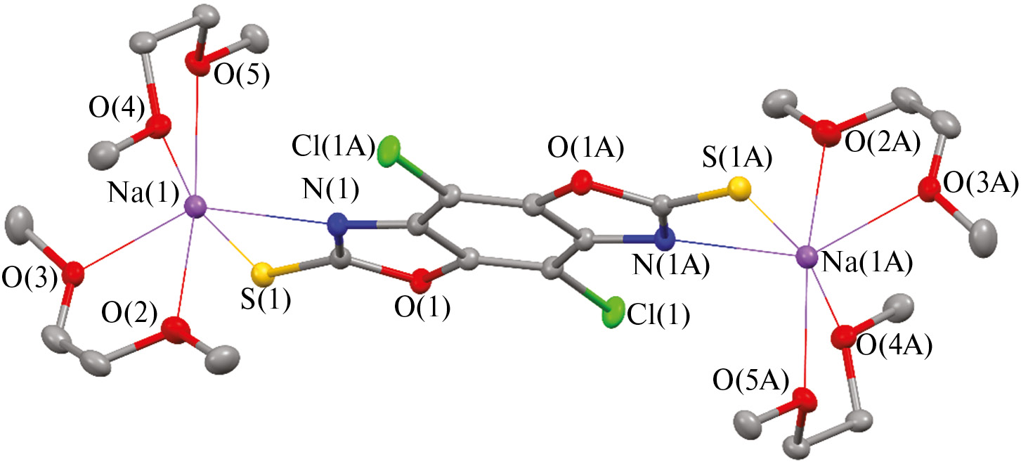 Таким образом, в данной работе был синтезирован и структурно охарактеризован новый дитопный центросимметричный гетероциклический лиганд, содержащий два аннелированных оксазольных гетероцикла — 4,8-дихлорбензо[1,2-d:4,5-d´]бис (оксазол)-2,6(3H,7H)-дитионa (H₂L). Было продемонстрировано, что дилитиевые и динатриевые соли этого соединения — Li2L(THF)6 и Na2L(DME)4 – являются нелюминесцентными молекулярными комплексами, в которых ионы натрия хелатно связаны S^N фрагментом, а ион лития координируется только к атому N. С ионами неодима и иттербия депротонированный H₂L образует ионные соединения состава [Ln(DMSO)8][L]1.5, проявляющие умеренную, характеристичную для данных ионов ФЛ в ближнем ИК-диапазоне.