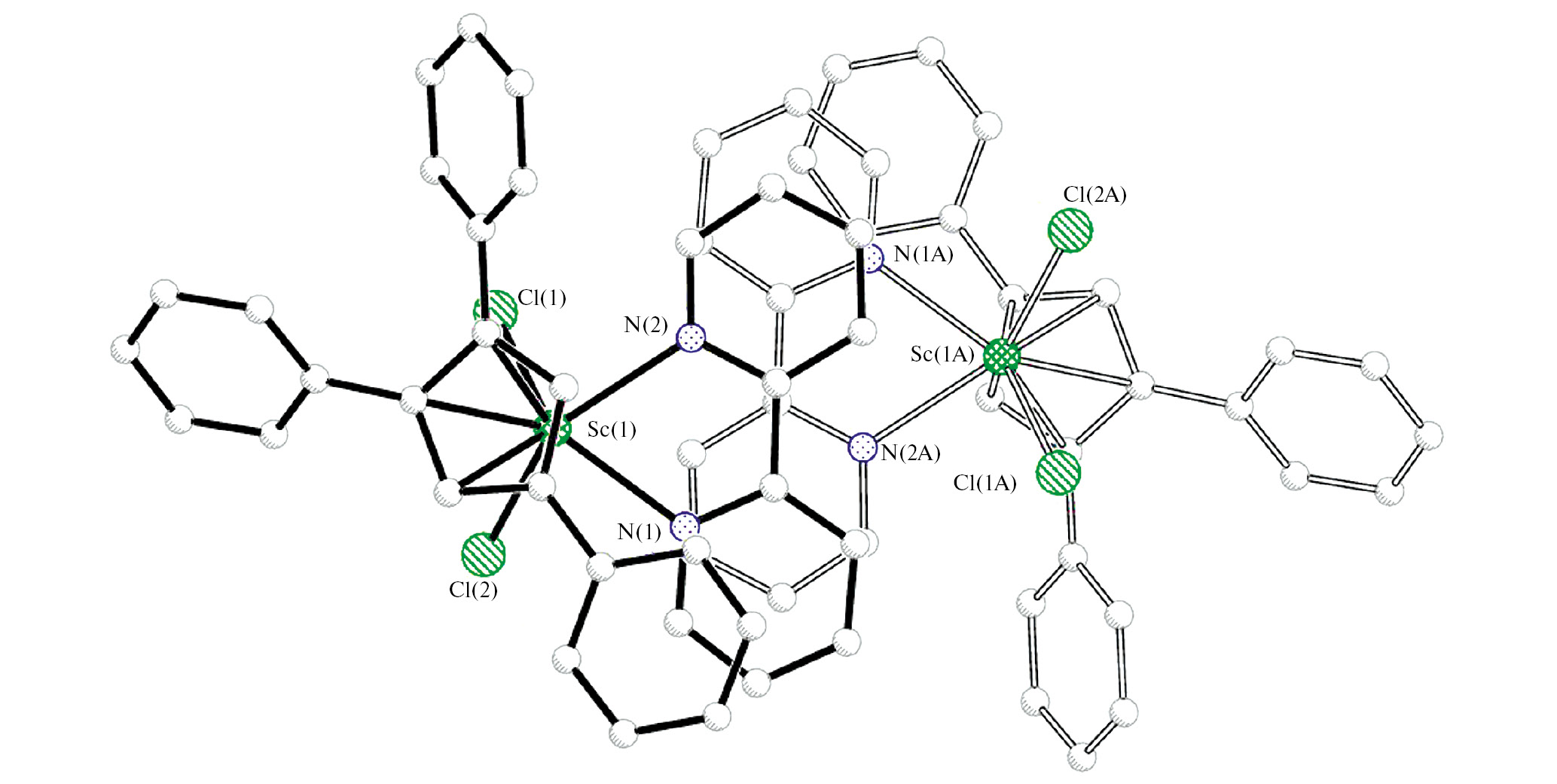 Найдено, %: C 69.77; H 5.09; N 4.44. Для C33H25N2Cl2Sc вычислено, %: C 70.11; H 4.46; N 4.96.