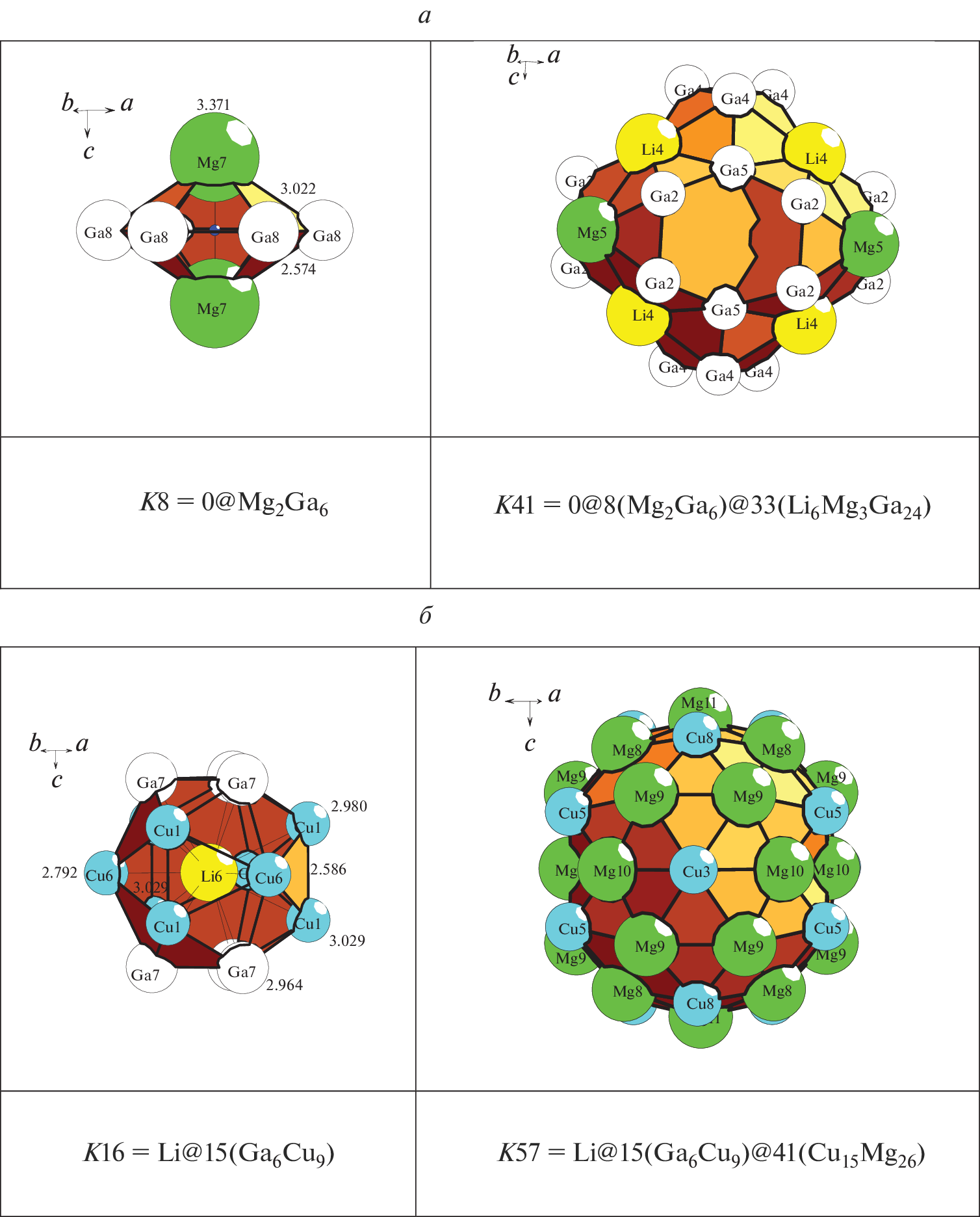 - Lin Qisheng, Corbett J.D. Li14.7Mg36.8Cu21.5Ga66: An intermetallic representative of a type IV clathrate // Inorg. Chem. 2008. V. 47 P. 10825-831.
