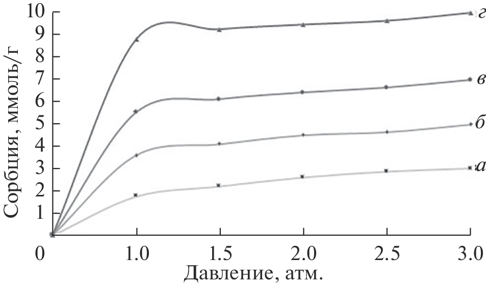 Основной причиной глобального потепления является неуклонный рост парниковых газов в атмосфере. Наибольшую долю парниковых газов составляет углекислый газ CO2. Поэтому важной фундаментальной и прикладной задачей является разработка высокоэффективных сорбентов CO2. В статье исследуется сорбция CO2 сорбентами, представляющими собой силикагели на основе поликремниевой кислоты, модифицированные гидроксиэтилкарбаматом. Показано, что для модификации сорбентов оптимальной является концентрация растворов гидроксиэтилкарбаматов, равная 30%. Факт модификации подтвержден наличием гидроксильных, карбонильных и аминогрупп в составе сорбентов. Установлено, что наличие аминогрупп способствовало увеличению сорбции углекислого газа силикагелем в несколько раз. Исследована термостойкость полученных сорбентов. Показано, что наибольшие показатели сорбции составляли 8.8% от массы сорбента при 30°С. После 5 циклов процессов сорбции/десорбции максимальная сорбционная емкость сорбентов снижалась на 10%. При высоких давлениях до 3 атм. сорбция увеличивалась. Сорбенты, модифицированные 30% раствором гидроксиэтилкарбаматов, при 3 атм. сорбировали до 9.96 моль СО2/г. Относительно быстрый рост скорости сорбции при высоких давлениях и относительно медленный рост при низких давлениях доказывают, что процесс соответствует сорбции 2-го типа. Такие сорбционные системы перспективны для применения в различных технологических газовых системах, содержащих CO2.