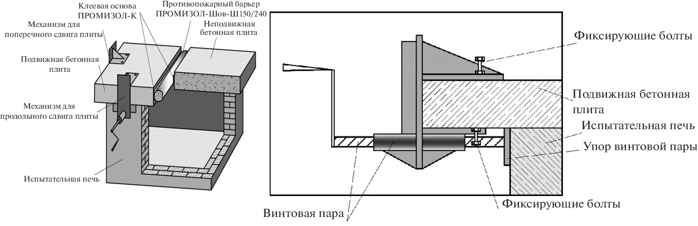 В статье исследуется огнестойкость конструкции с противопожарным барьером на основе супертонкого базальтового волокна для огнестойкой заделки швов и примыканий в составе железобетонных конструкций в условиях знакопеременной деформации. В европейских нормативных документах такие противопожарные барьеры специально разрабатываются для применения в деформационных швах и работают при сжатии, растяжении и сдвиге шва. В России изделия и материалы, выполняющие функцию противопожарного барьера, не испытываются в условиях знакопеременной нагрузки. В статье приведена методика испытаний на огнестойкость для деформационного шва в железобетонной конструкции. Получены результаты по параметрам целостности (E) и теплоизолирующей способности (I) для железобетонных плит с последующим в сторону увеличения ширины зазора между плитами и сдвига их относительно друг друга на +25% составляет не менее 245 мин.