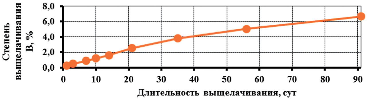 Интегральную степень выщелачивания i-го элемента за k-й период испытаний , %, вычисляли по формуле: