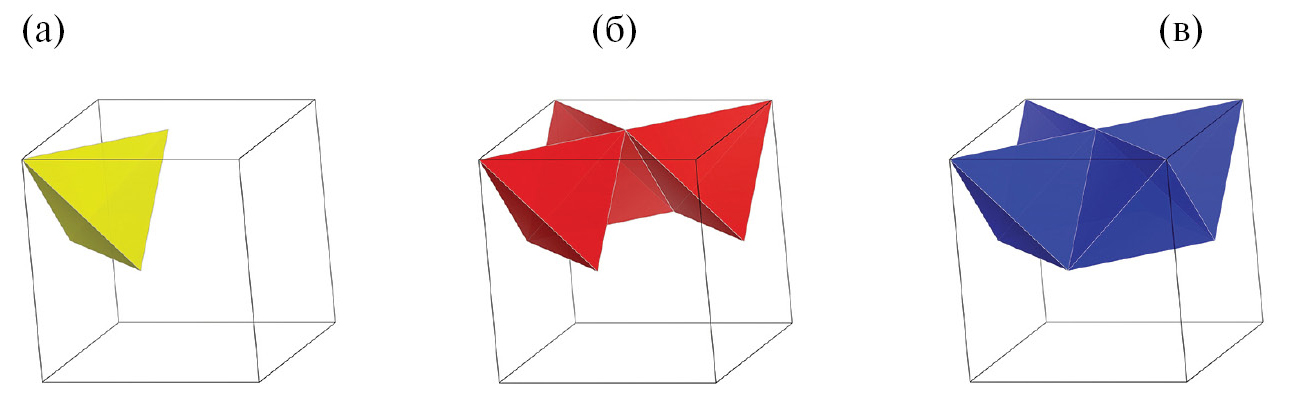 Рис. 3. Флюоритовые модули Карла–Эйринга: а – модуль b, б – модуль f, в – модуль i.