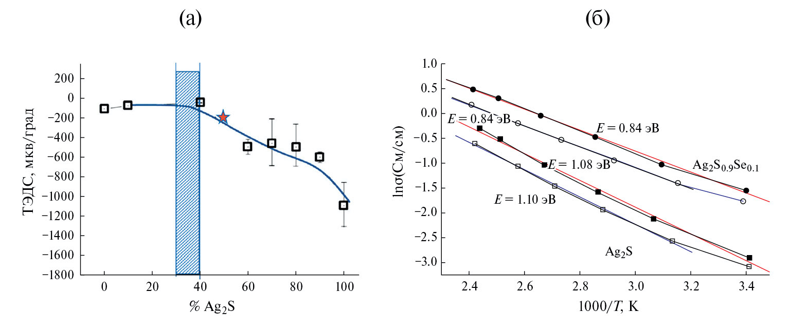 Состав | Ag2(S0.8Se0.2) | Ag2S | ||
