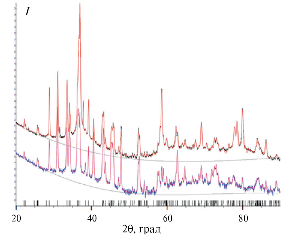 Измерения РФА проводились на дифрактометре D8 Discover (Bruker, Germany) с использованием монохроматизированного параллельного пучка CuKα1 излучения. Обработка дифрактограмм методом полнопрофильного моделирования проводилась при помощи ПО Topas 5.0 (Bruker). Микроструктурные характеристики определялись с учетом инструментальных аберраций при помощи эталонирования по стандартному образцу LaB6 (NIST SRM 660a), снятому в аналогичных условиях. Под размером кристаллитов здесь понимается объемно-взвешенная средняя длина элементарных колонок (когерентная длина), усредненная по всем направлениям.