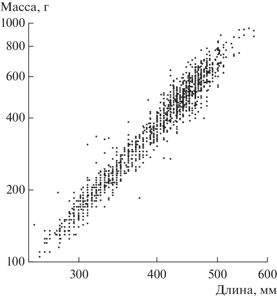 A mathematical model is proposed that describes the age-related dynamics of the vector of means and the covariance matrix of characters of individuals in the Sakhalin pollock population Gadus chalcogrammus (Pallas, 1814). The model is based on the Bertalanffy and Gompertz equations. The covariance matrix is composed of two parts: noise (caused by rapid random fluctuations in environmental conditions) and structural (due to intrapopulation variability of the parameters included in the growth equations). The model well reproduces the age dynamics of the distribution of fish according to the quantitative characters of individuals. The age-related increase, the passing through a maximum at a young age, the subsequent decrease in dispersions and their stabilization at low levels in the length and mass of the body of adult fish have been described. The age-related decrease in the correlation between length and body mass has been explained.