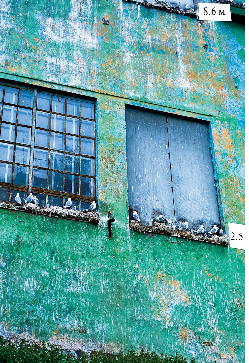 Рис. 2. Пример заселенности моевками оконных проемов, расположенных на разной высоте, в зоне сильного беспокойства (вблизи грузового причала)