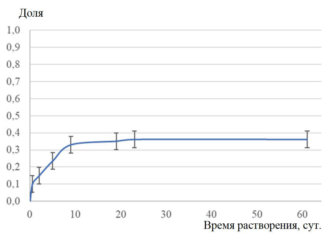 Рис. 3. Характерный вид кривой растворимости сложного NPK удобрения с покрытием на основе серы в количестве 40 масс. %