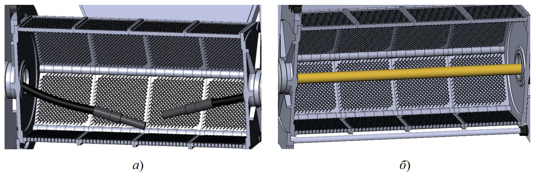 Рис. 4. Барабан с погружными (а) и сплошным (б) анодами