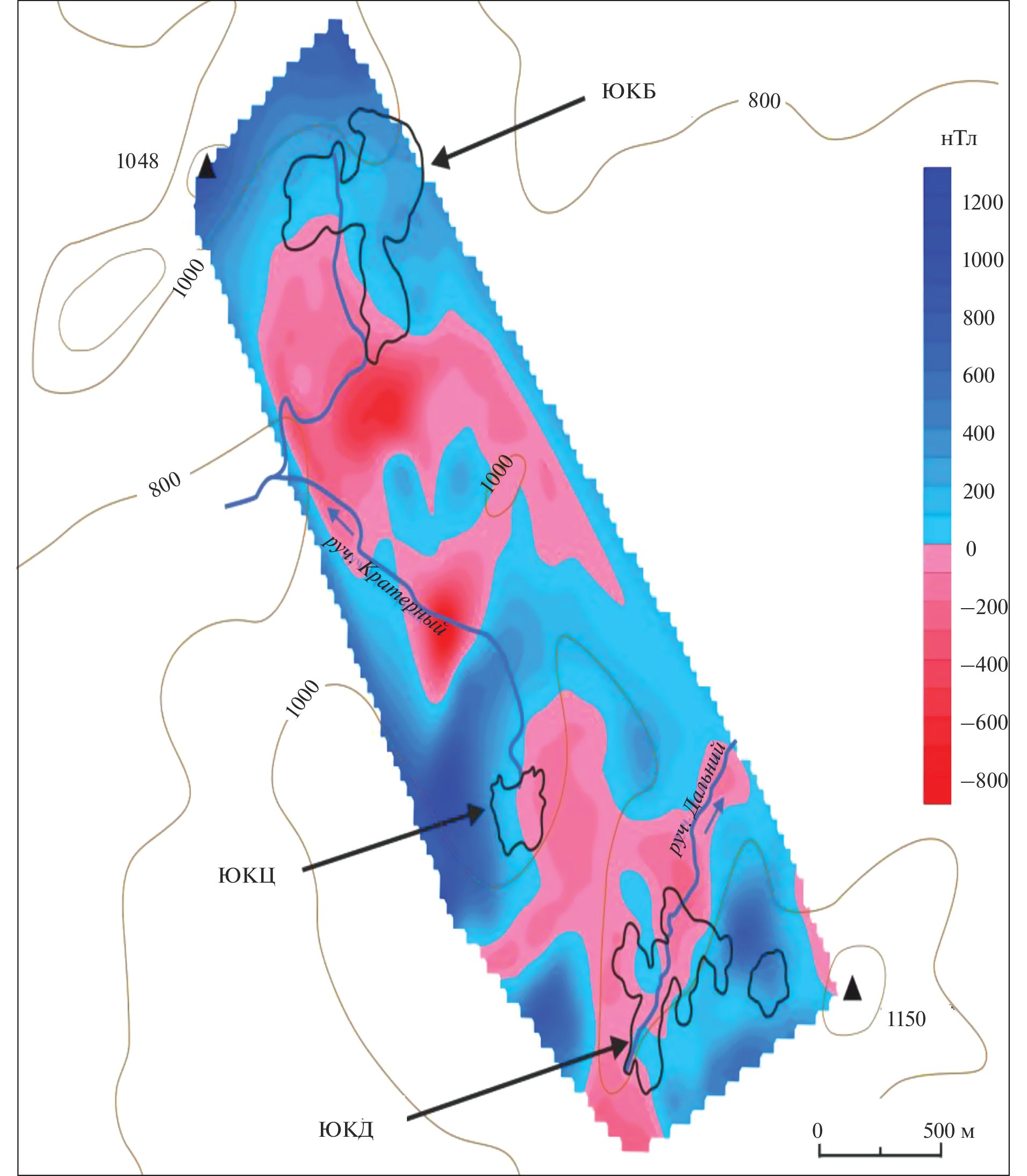 На основании многолетних исследований построены карты аномалий магнитного поля ΔTа для крупных геотермальных систем Паужетского района Южной Камчатки. Магнитные поля имеют как общие характеристики, так и индивидуальные особенности для каждого объекта. Нижне-Кошелевское пародоминирующее геотермальное месторождение выделяется системой линейных отрицательных аномалий магнитного поля, приуроченных к термоконтролирующим разрывным тектоническим нарушениям. Паужетское геотермальное месторождение характеризуется неоднородным строением аномального магнитного поля ΔTа: СЗ область отмечается спокойным слабо отрицательным магнитным полем, свидетельствующим о преобладании в этой части месторождения латерального растекания гидротерм из верхнего водоносного горизонта; ЮВ – большим количеством знакопеременных магнитных аномалий высокой интенсивности, приуроченных к субвулканическим телам кислого-среднего состава. Южно-Камбальная группа термальных полей характеризуется пониженным модулем магнитной индукции Т по сравнению с Паужетским и Нижне-Кошелевским геотермальными месторождениями, что свидетельствует о более интенсивном изменении горных пород Камбального хребта гидротермально-метасоматическими процессами, по-видимому, в результате длительного воздействия конвективного теплового потока.
