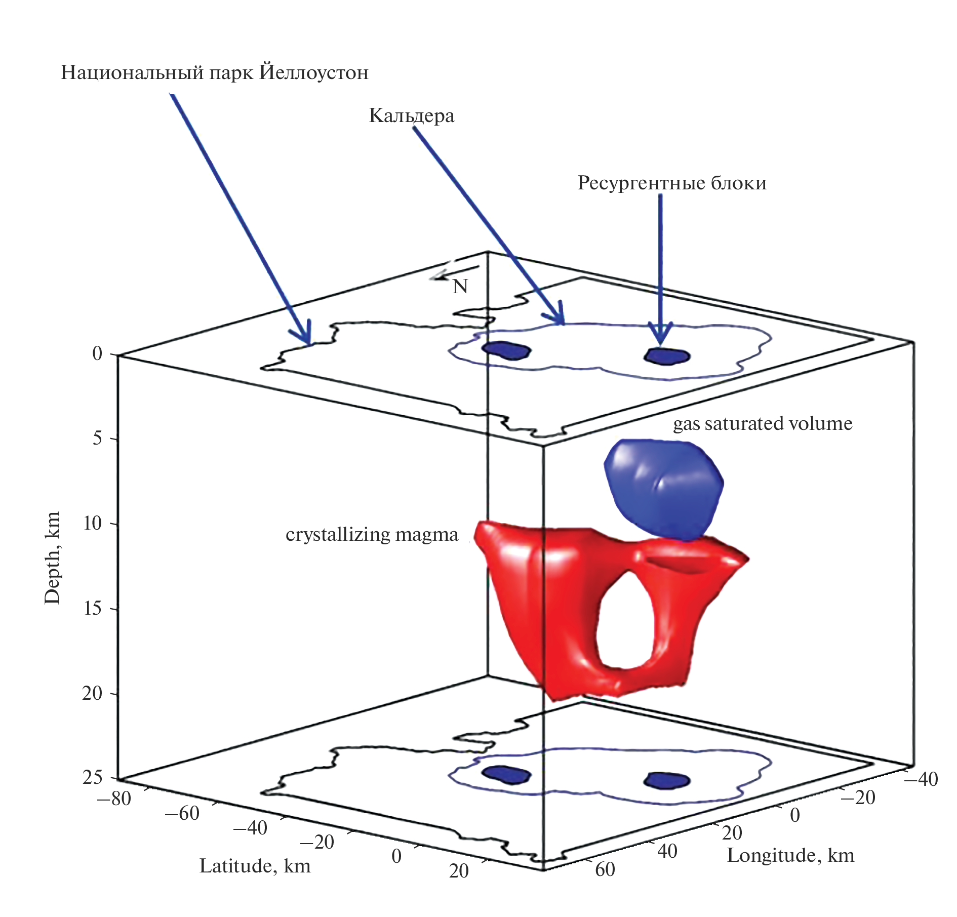 - Husen S., Smith R.B., Waite G.P. Evidence for gas and magmatic sources beneath the Yellowstone volcanic field from seismic tomographic imaging // Journal of Volcanology and Geothermal Research. 2004. V. 131. P. 397‒410.