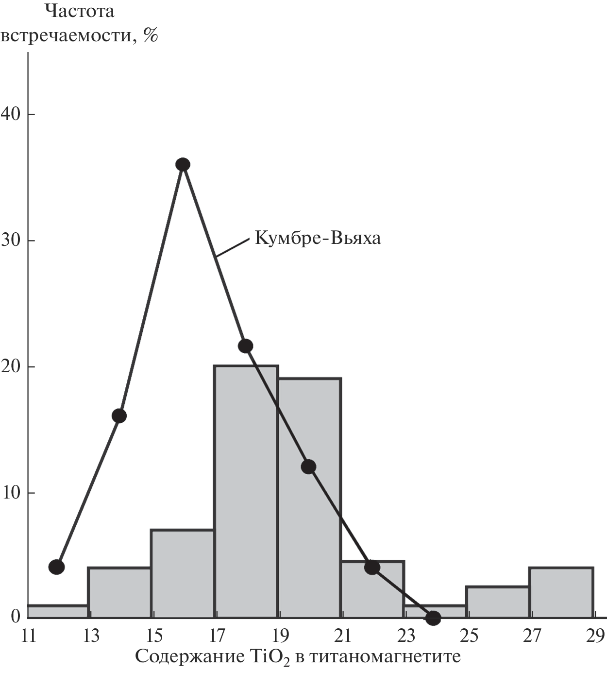 Проведены комплексные минералого-геохимические исследования представительной пробы тефры с вулкана Кумбре-Вьяха (извержение 2020–2021 гг.), имеющей гравийно-псаммитовый гранулометрический состав, и характеризующейся аномально высокой степенью везикулярности частиц. По валовому химическому составу эта тефра соответствует переходу от щелочных пикробазальтов к щелочным базальтам, принципиально отличаясь от пеплов тефры окраинно-континентальных вулканов. В составе исследованной тефры обнаружено 45 микроэлементов с валовым содержанием до 2333 г/т, что превышает таковое в тефрах островодужных вулканов. По соотношению геохимических критериев тефра с вулкана Кумбре-Вьяха соответствует средним показателям для внутриплитных вулканов в океанах. Геохимической особенностью изученной тефры является сильное обогащение лантаноидами, благородными и платиноидными металлами. В составе литогенной газовой фазы, выделенной нагреванием из исследуемой тефры, установлены H2, CO, CO2, H2O, CH4, C2H4, C2H6, C3H6, С3H8. Пропорции между неорганическими компонентами в газовой фазе в целом соответствуют пограничной области между коровыми и мантийно-коровыми производными, но при этом обнаруживается относительно низкое содержание воды. В составе микролитов выявлены и изучены оливин состава Fo73–84, существенно диопсидовый клинопироксен, плагиоклазы состава андезин-битовнит, хромшпинелиды, фазово-гомогенные твердые растворы ильменита в магнетите, фазы Ni-Cu-содержащего самородного железа, кварц, натриевые гидроксил-хлориды. Кроме того, в тефре вулкана Кумбре-Вьяха обнаружено дисперсно-рассеянное углеродное вещество с изотопным составом углерода δ13СPDB = –30…–24‰, что соответствует изотопному составу углерода в абиогенных угдеродных веществах вулканогенного происхождения. Вся совокупность результатов минералого-геохимических исследований характеризует вулкан Кумбре-Вьяха как типичного представителя внутриплитно-океанических плюмовых вулканов.