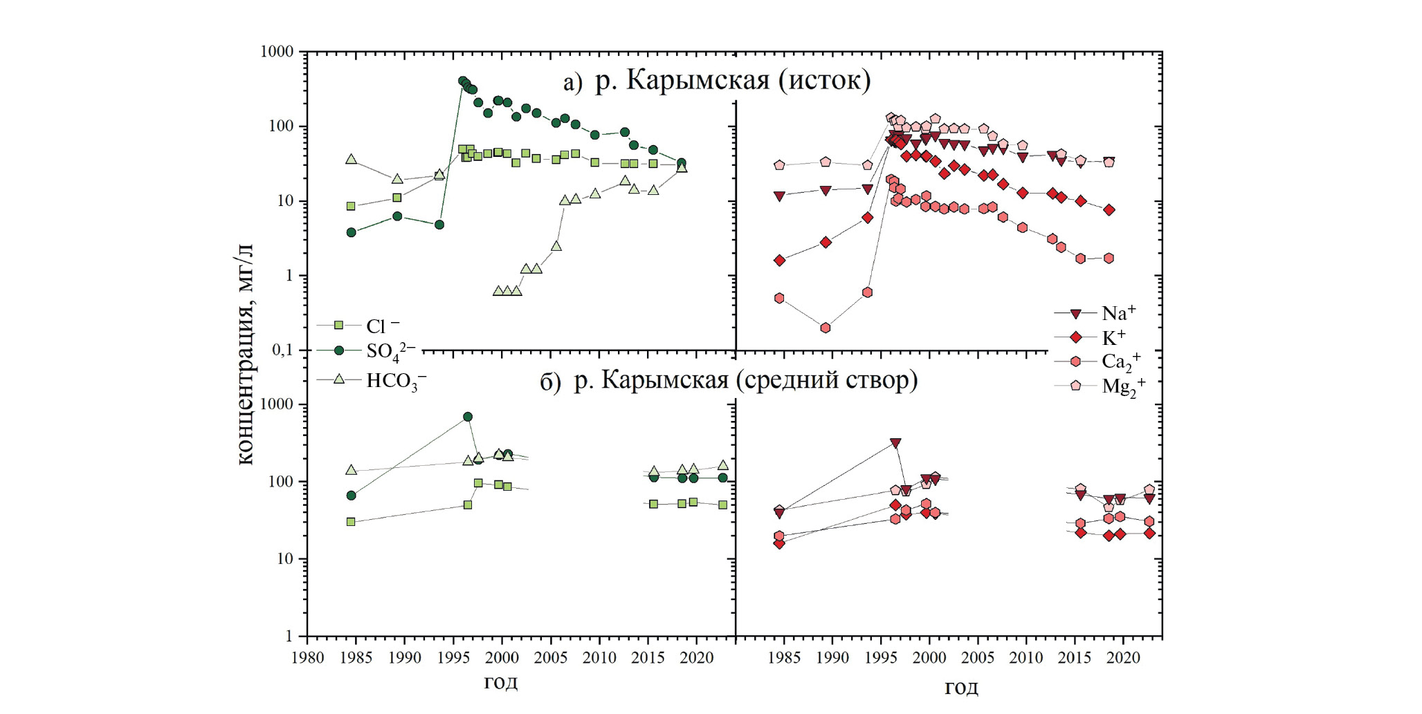 Таблица 2. Химический состав реки Карымская в период с 1984 по 2022 гг., мг/л