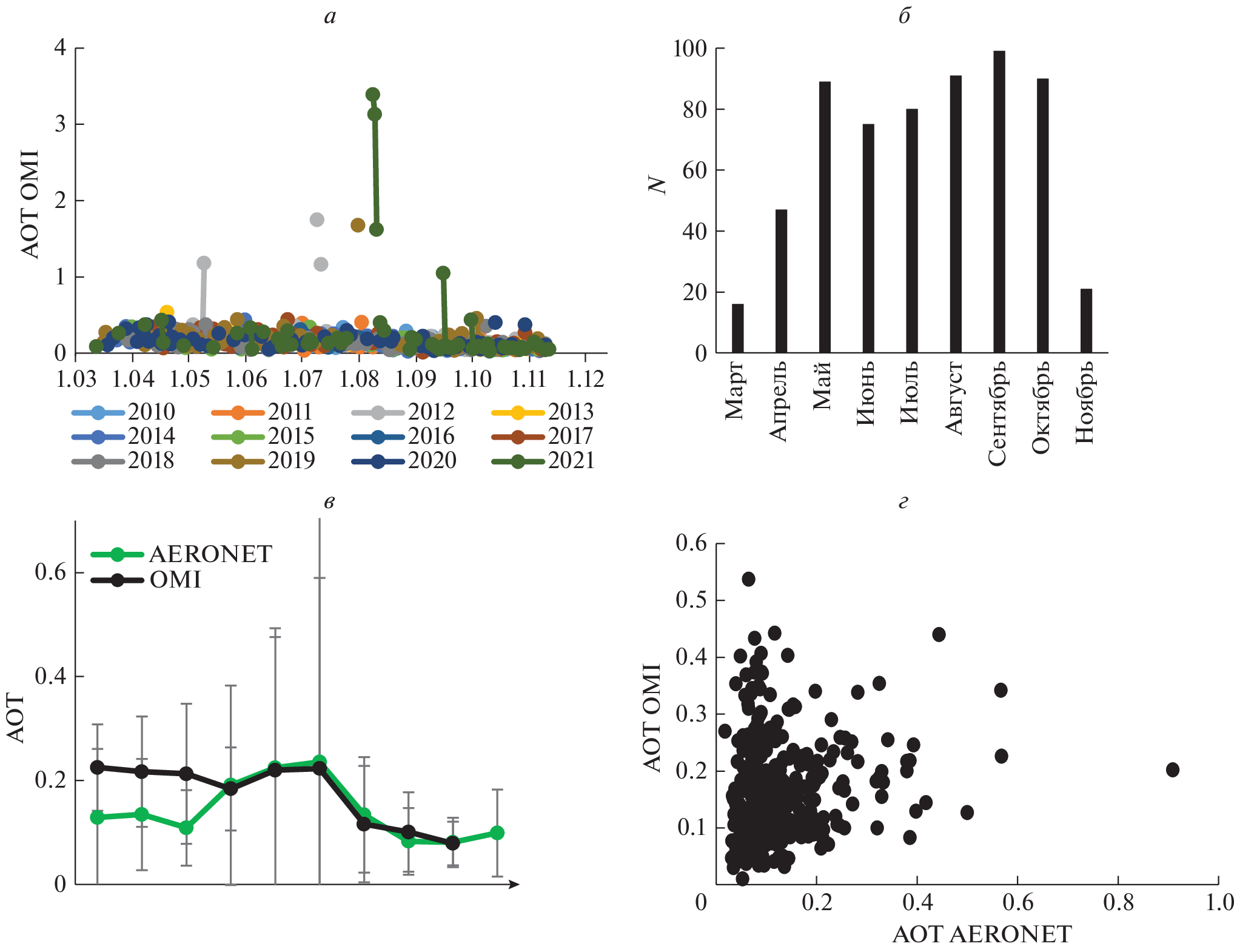 - Giles D.M., Holben B.N., Eck T.F., Sinyuk A., Smirnov A., Slutsker I., Dickerson R.R., Thompson A.M., Schafer J.S. An analysis of AERONET aerosol absorption properties and classifications representative of aerosol source regions // J. Geophys. Res. 2012. V. 117. D17203. https://doi.org/10.1029/2012JD018127, 2012. 1-18.