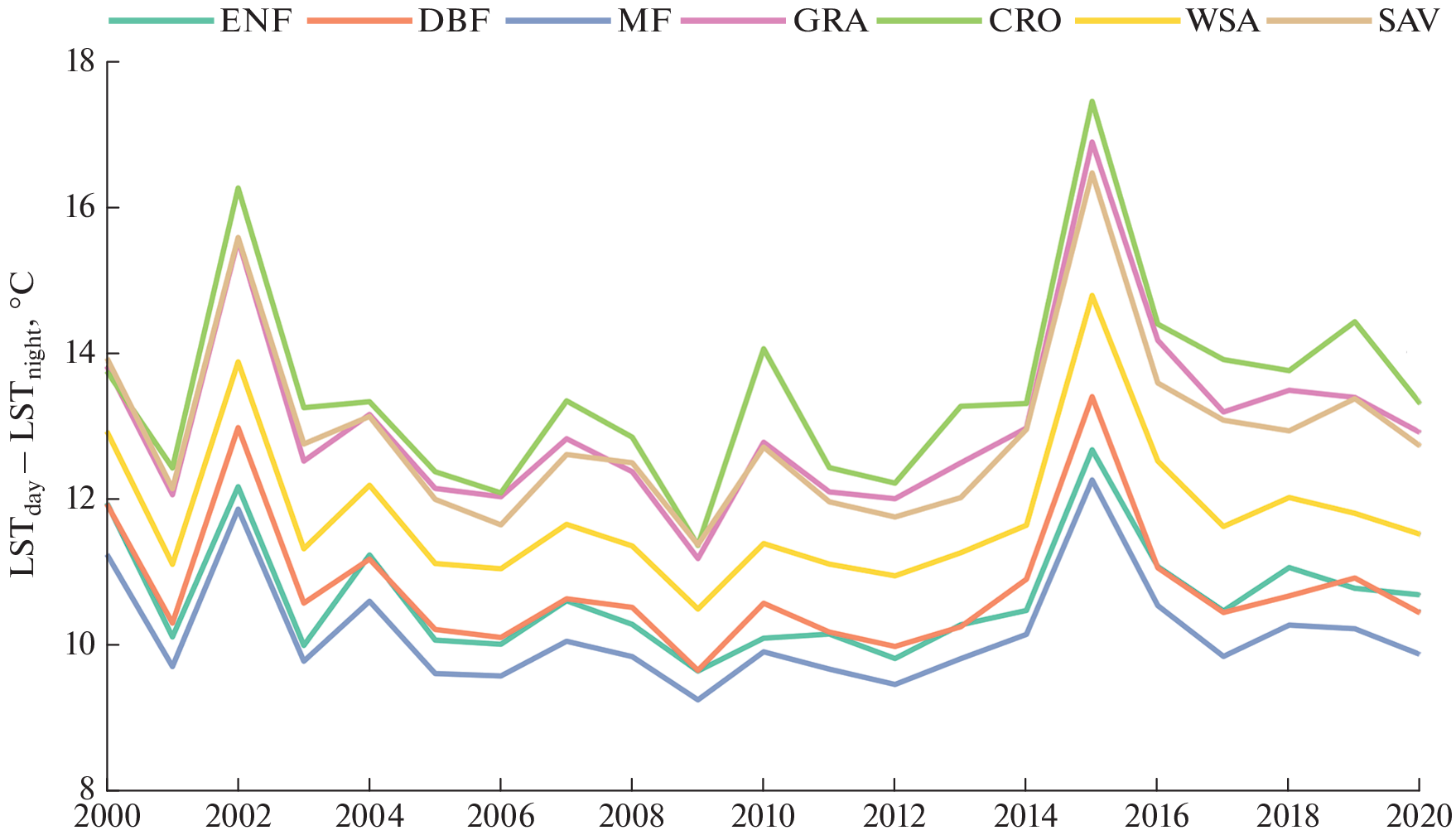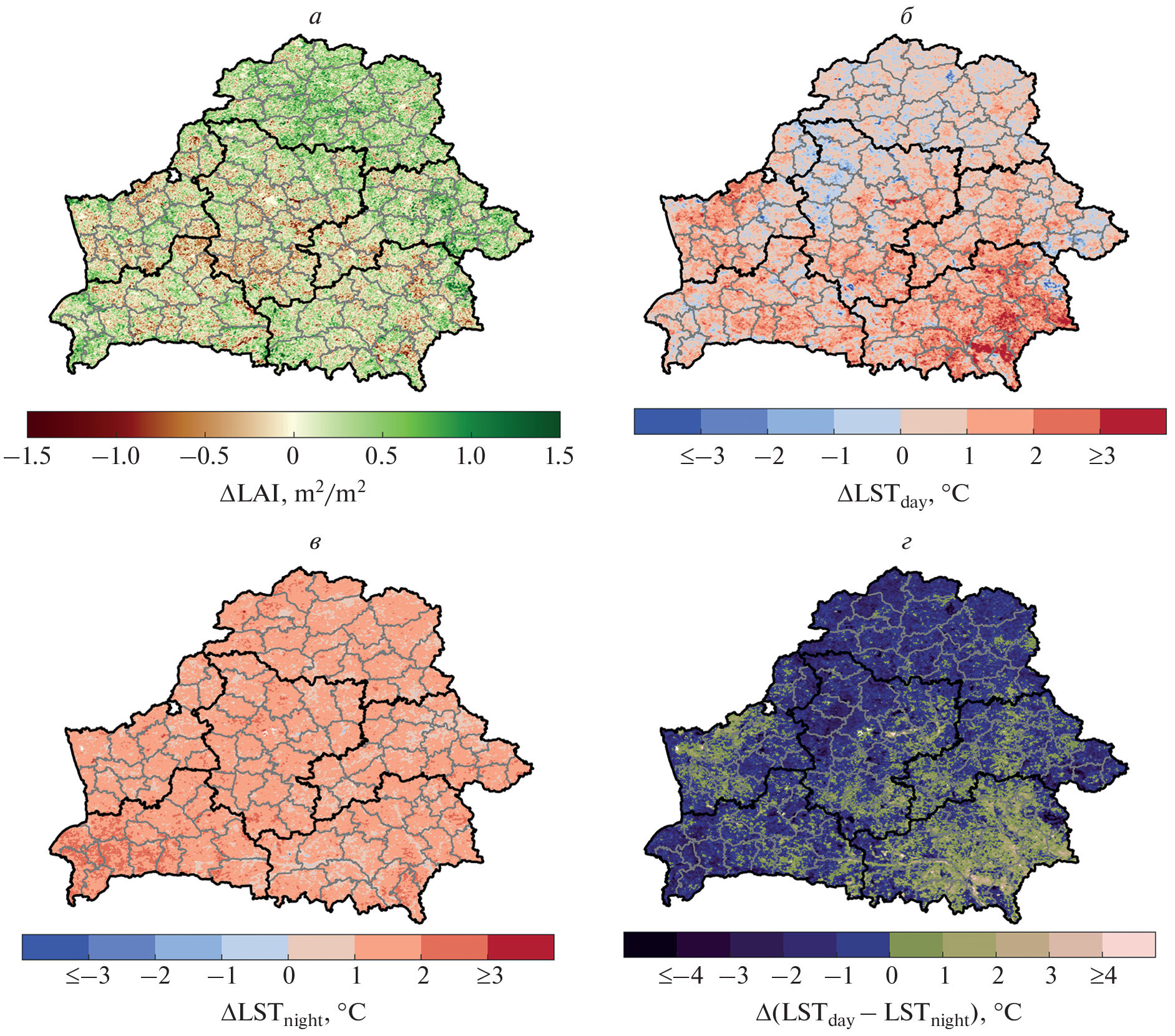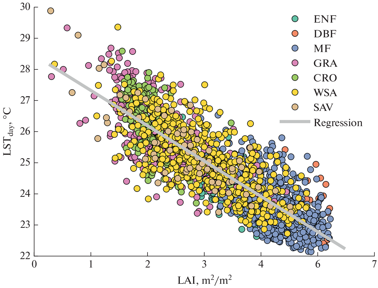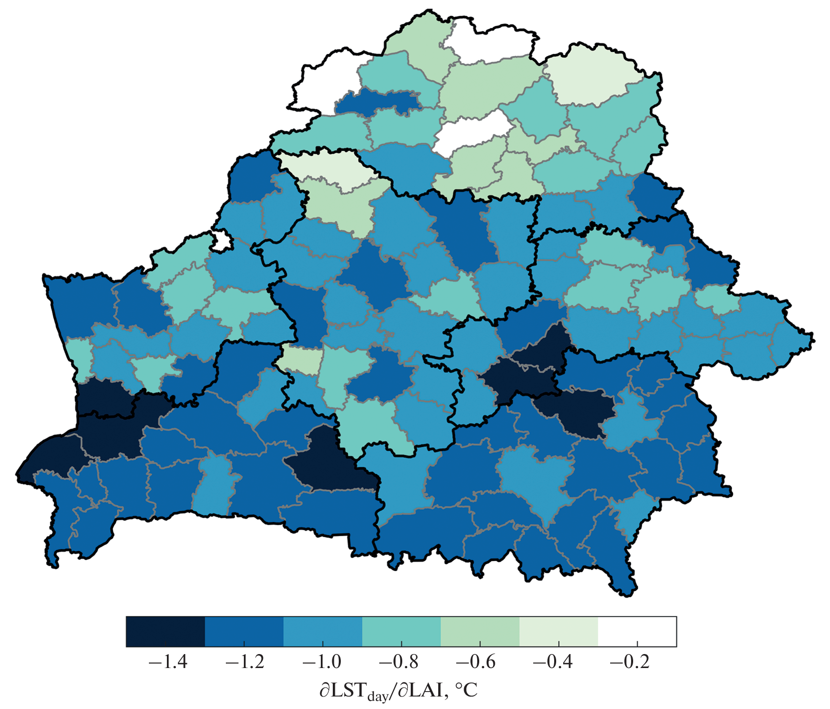 - Rasul A., Ibrahim S., Onojeghuo A.R., Balzter H. A Trend Analysis of Leaf Area Index and Land Surface Temperature and Their Relationship from Global to Local Scale // Land. 2020. V.9. № 10. P. 1–17. https://doi.org/10.3390/land9100388
