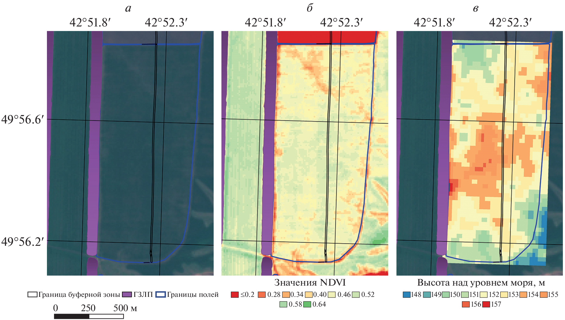 Determining the patterns of changes in the productivity of agricultural land in different areas used for growing agricultural land in the zone of influence of State Forest Strips (GZLP) is relevant due to the need to assess the future crop yield in fields with differences in geomorphological, soil and climatic conditions in the research area. An object. Sowing of winter grain crops in fields mixed within the influence of State forest strips. Materials and methods. The research methodology is based on the geoinformation analysis of the results of the decryption of actual satellite images, both to identify the distribution of cultivated fields located in the zone of influence of GZLP, and the state of crops on them. At the same time, the soil zonality of the research area was taken into account in view of the considerable length of forest strips. The assessment of the condition of winter grain crops as they move away from the planting was carried out using the NDVI vegetation index calculated from the high-resolution spectral channels of satellite images. Results and conclusions. Based on the results of the research, a database of spatial data of the processed fields has been compiled. The grouping of fields was carried out both according to the similarity of the conditions of the places of cultivation of crops and by agricultural crops. Their placement and geomorphological parameters have been established. With the use of geoinformation technologies for groups of fields using statistical processing tools, the average values of the width and area of the selected zones of influence, as well as terrain parameters, were determined. During geoinformation mapping, data on the state of crops at the end of May were obtained based on the change in the NDVI index by field groupings in the zone of GPLP impact. These data are the basis for the forecast of crop yields, taking into account the spatial location of fields.