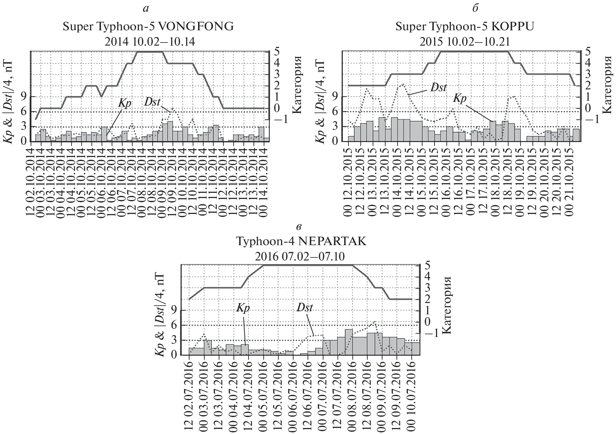 - Захаров В.И., Пилипенко В.А., Грушин В.А., Хамидуллин А.Ф. Влияние тайфуна VONG-FONG 2014 на ионосферу и геомагнитное поле по данным спутников SWARM: 1. Волновые возмущения ионосферной плазмы // Солнечно-земная физика. 2019. Т. 5. № 2. С. 114–123. https://doi.org/10.12737/szf-52201914