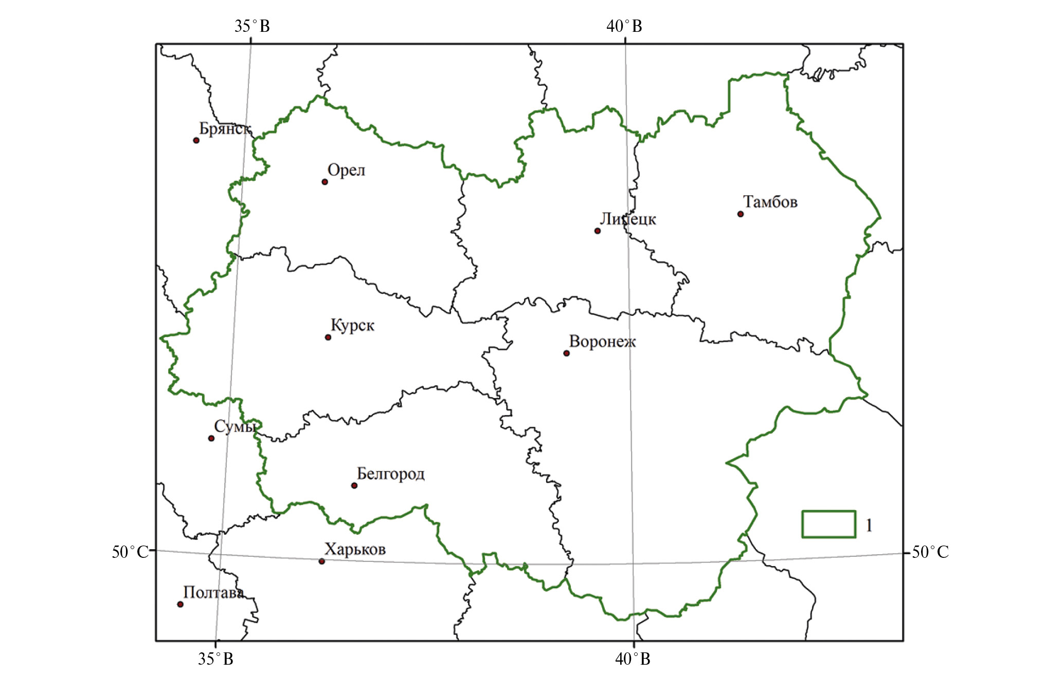 Рис. 1. Местоположение территории исследования. 1 – границы анализируемой территории.