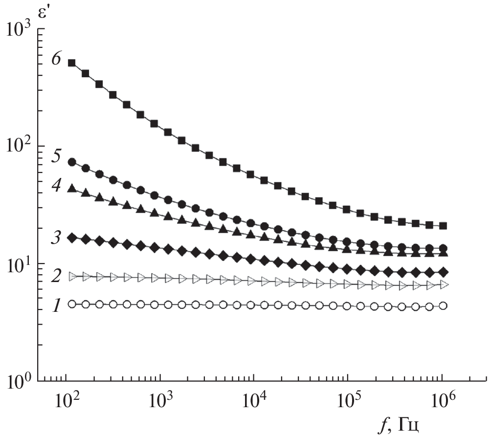 an appropriate solvent in amounts of 10, 20, 30, 40, and 50 vol %. The frequency behavior of the permittivity,