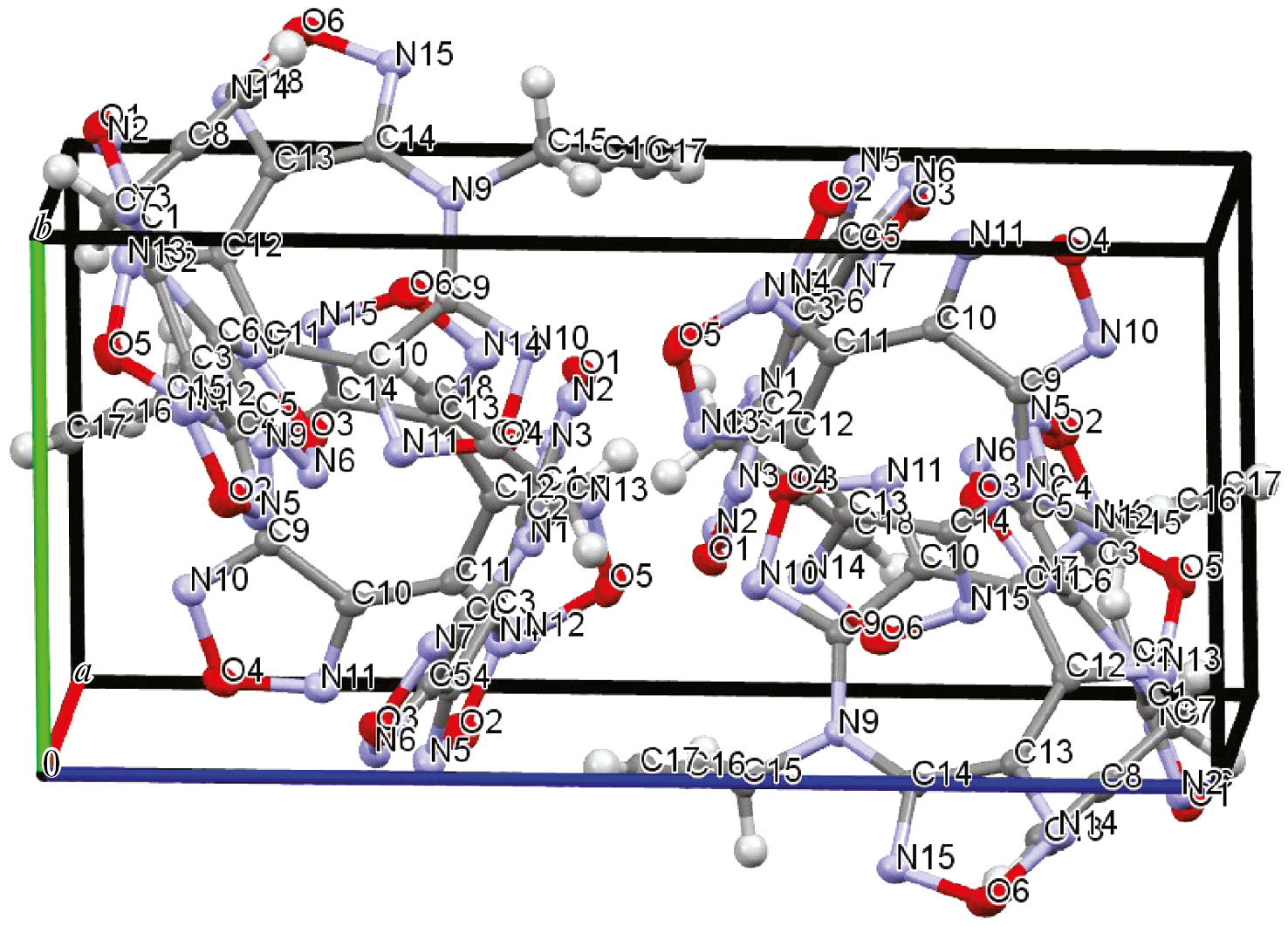 Расчетами определена и уточнена элементарная ячейка Az(O)Prg при температуре 295 К (табл. 7). Исходя из величин объемов элементарной ячейки при температурах 100 и 295 К и значений плотности при 100К, была рассчитана плотность соединения при 295 К (1.562 г/см3). Эта величина на 0.085 г/см3 меньше, чем плотность соединения AzPrg при комнатной температуре. По всей видимости, наличие в кристаллической структуре соединения Az(O)Prg пустот в виде каналов и приводит к тому, что плотность кристаллов этого соединения заметно меньше, чем плотность AzPrg.