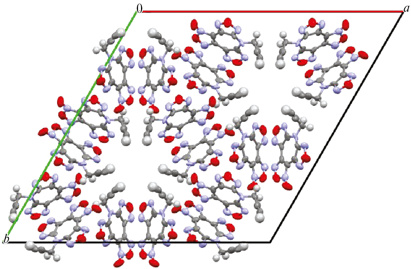 Для оценки величины энтальпии образования Az(O)Prg можно предположить, что разница в энтальпиях образования AzPrg и Az(O)Prg будет такой же, как и между величинами энтальпий образования AzAll и 7-аллил-7Н-дифуразано[3,4-b:3′,4′-f]фуроксано[3″,4″-d]азепина (Az(O)All) [14] вследствие вероятной одинаковости вида и числа укороченных диполь-дипольных взаимодействий (контактов) между функциональными группами при упаковке в кристалле молекул, содержащих близкие по строению пропаргильные и аллильные группы. При этом предположении энтальпия образования Az(O)Prg должна составлять 904.4 кДж/моль.