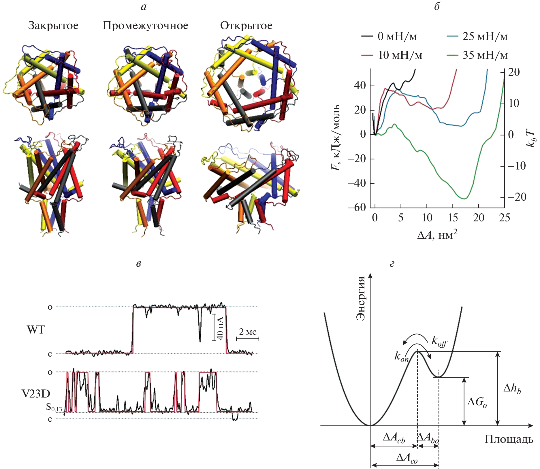 - Perozo E., Cortes D.M., Sompornpisut P., Kloda A., Martinac B. 2002. Open channel structure of MscL and the gating mechanism of mechanosensitive channels. Nature. 418 (6901), 942–948.