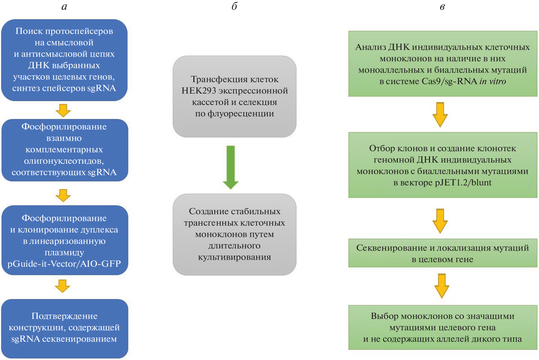 - Ломов Н.А., Вьюшков В.С., Петренко А.П., Сыркина М.С., Рубцов М.А. 2019. Методы оценки эффективности работы систем CRISPR/Cas 9 при геномном редактировании. Мол. биол. 53, 982–997.