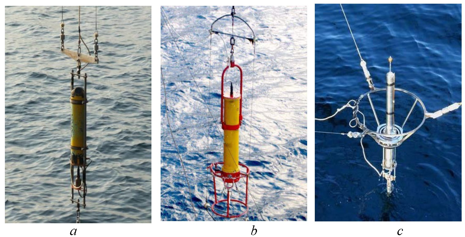 Рис. 1. Набор измерителей для исследования турбулентности в приповерхностном слое моря: DVS6000 (а), «Восток-М» (b), «Сигма-1» (с)