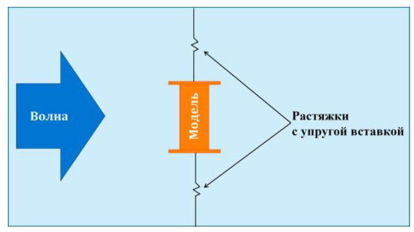 Рис. 10. Схема удержания модели в точке подбора волн в опытовом бассейне