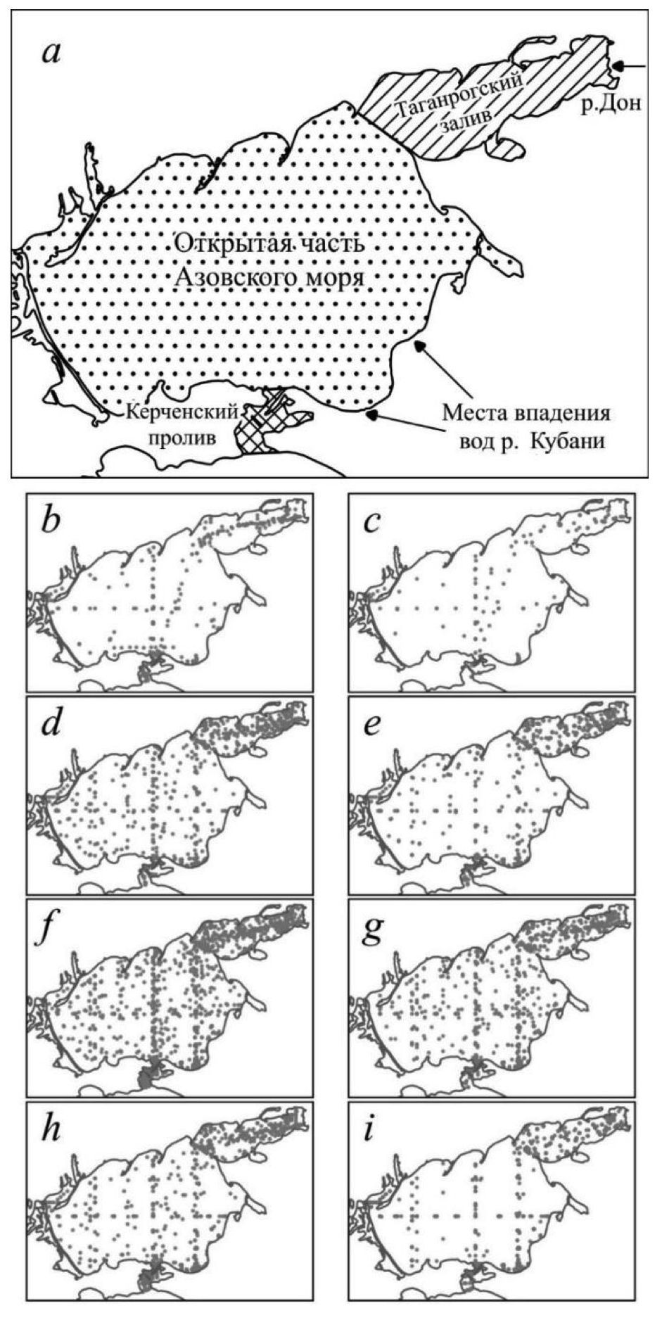 Основой исследования является океанографическая база данных Азовского моря за 1924–2020 гг. [14, 15]. Прибрежные станции (до глубины 1 м), выполненные ЮНЦ РАН, исключены из анализа.