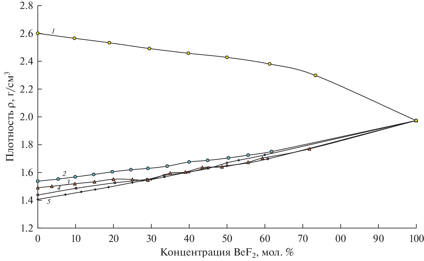 Плотность и электропроводность расплавленных солевых смесей фторида бериллия с хлоридами щелочных металлов