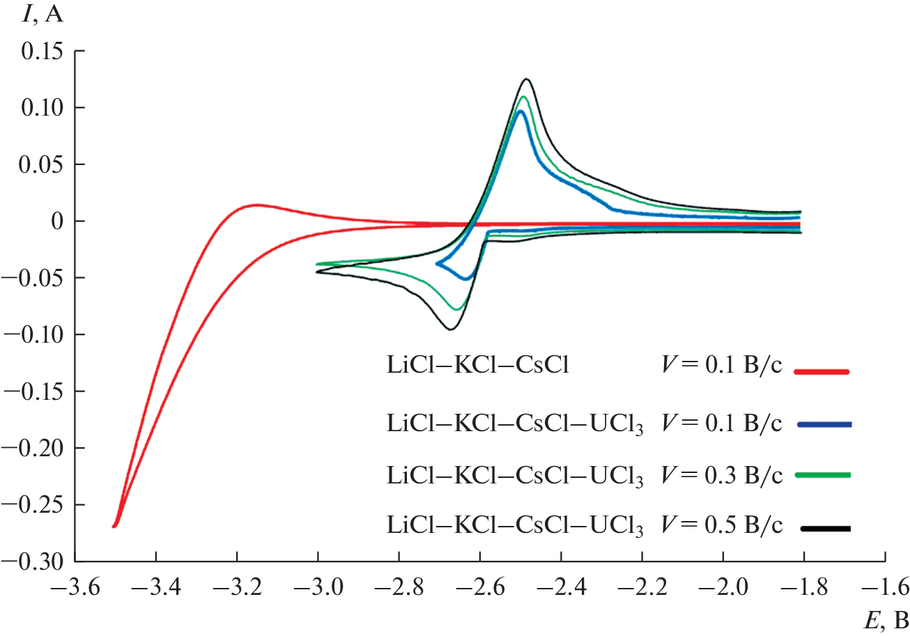 - Serrano K., Taxil P. Electrochemical reduction of trivalent uranium ions in molten chlorides // J. Appl. Electrochem. 1999. 29. P. 497–503.