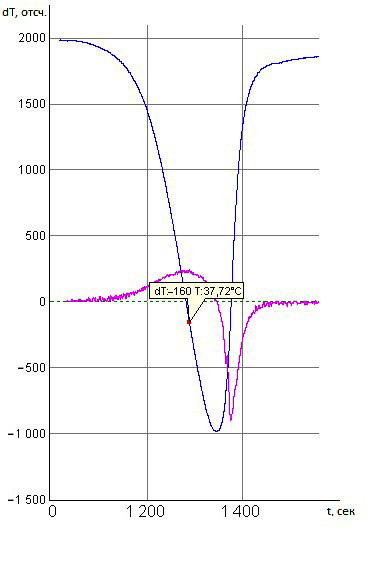 Диапазон исследования при записи температурной и дифференциальной кривых составлял от 0оС до 75оС.