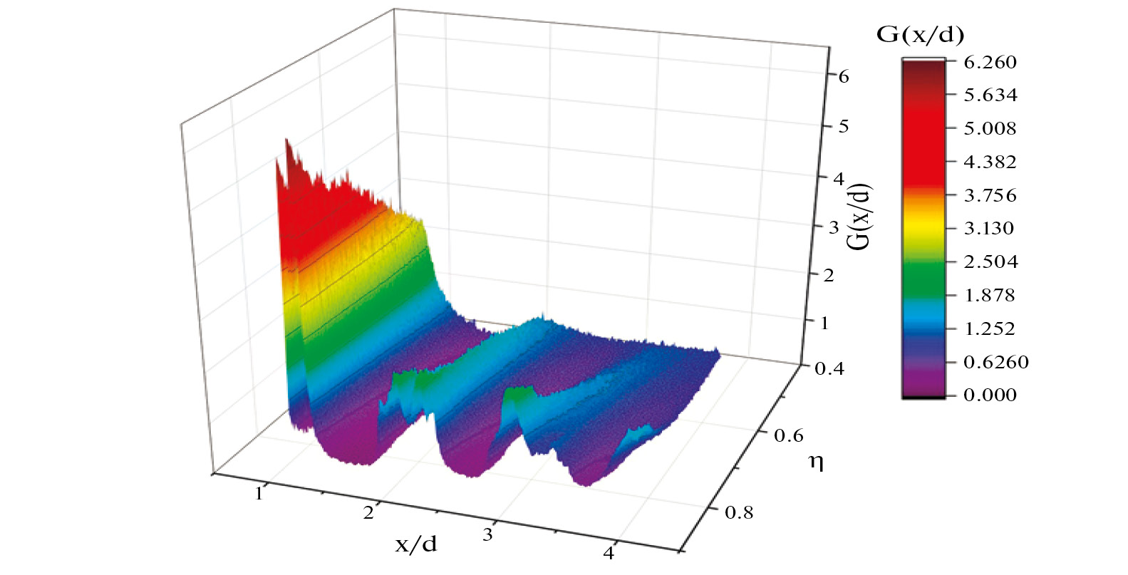 На рис. 7 приведены визуализированные массивы корреляционной функции G (x / d) для уплотняемого ансамбля правильных пентагонов (в виде трехмерного графика для различных плотностей упаковки).