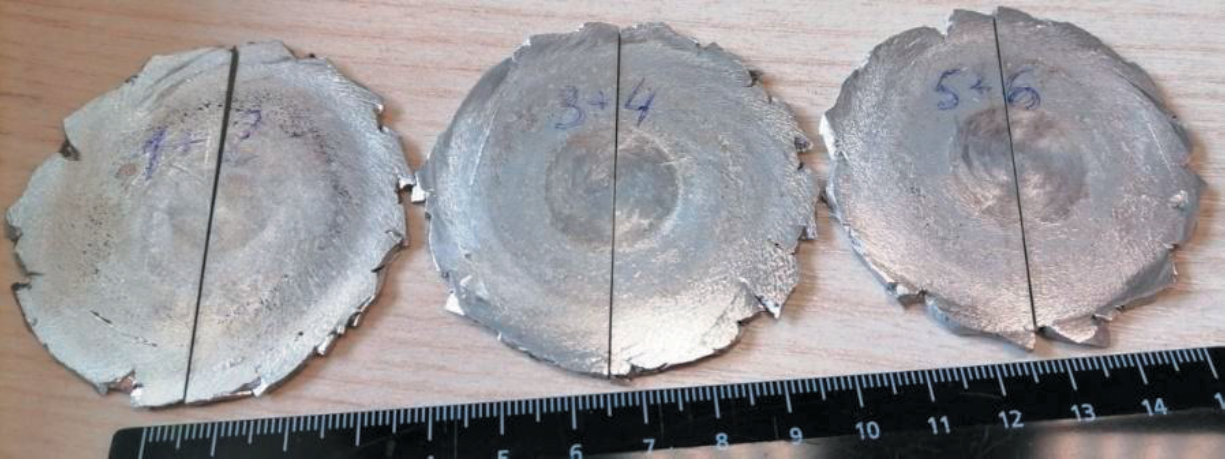 This article discusses the possibility to produce hybrid workpieces from aluminum alloys AMg2, AMg5, and AMg6 using combined upsetting deformation with a surface shear (torsional upsetting). The finite element simulation of shape formation using the QForm 10.1.5 software has been applied. The obtained rheological models of deformed materials and the specially developed friction.sliding_velocity subroutine have allowed us to obtain simulation results agreeing well with the experimental data. Metallographic studies have confirmed the high joining quality of workpieces in the contact area.