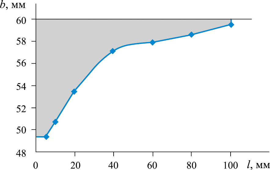 Результаты анализа показывают (рис. 3), что при наработке ножей 225 га и выше границы фигуры износа вплоть до расстояний 10 мм от его торца полностью находятся за пределами режущей кромки, что приводит к ухудшению режущих свойств, увеличению сопротивления резания, увеличению ударных нагрузок и повышенному износу ножа.
