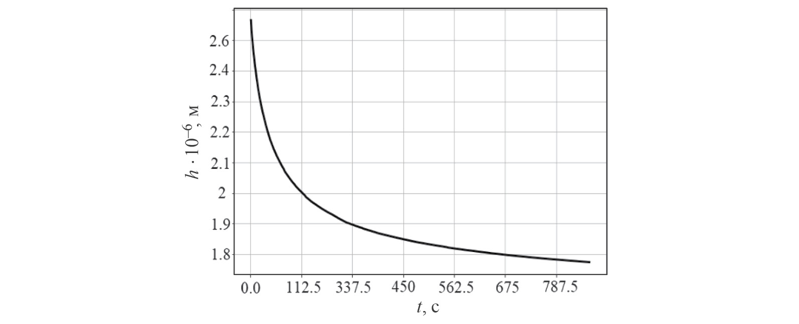 Рис. 2. Зависимость толщины смазочного слоя от времени