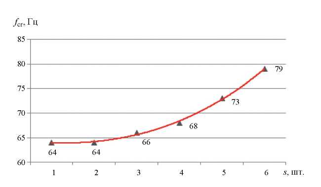 Рис. 4. Зависимость собственной частоты шнека fcr от числа заходов s на нем.